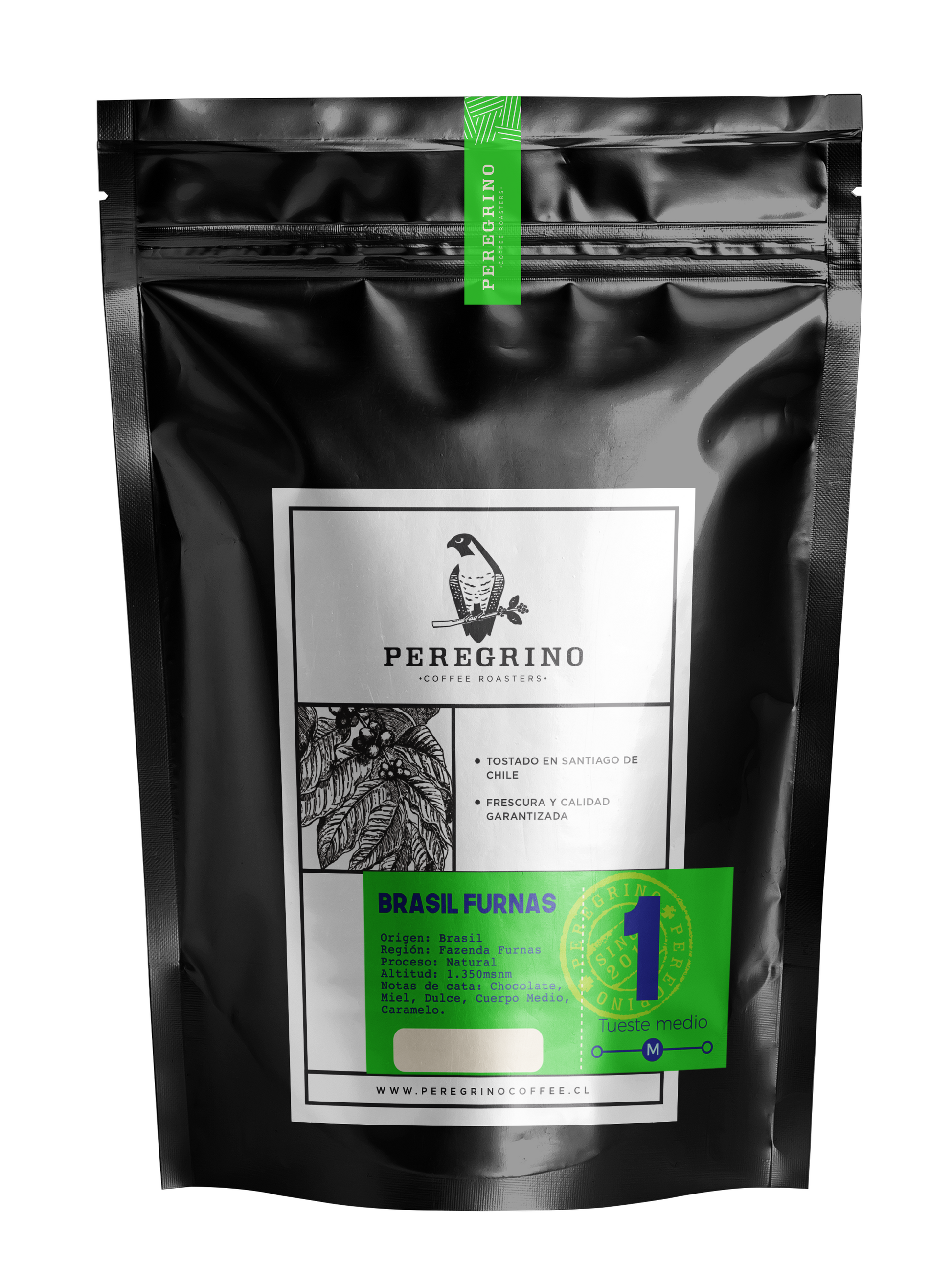 El café en grano Pellegrinho "Brasil Furnas" es un 100% Arábica de la variedad Catuai amarillo, cultivado en la Fazenda Furnas, Brasil, a 1.350 msnm. Con un proceso natural y tueste medio, este café destaca por sus notas de chocolate, miel, caramelo y un dulzor envolvente, complementadas por un cuerpo medio y baja acidez. Ideal para cualquier método de preparación, ofrece una experiencia rica y equilibrada para los amantes del café de especialidad.